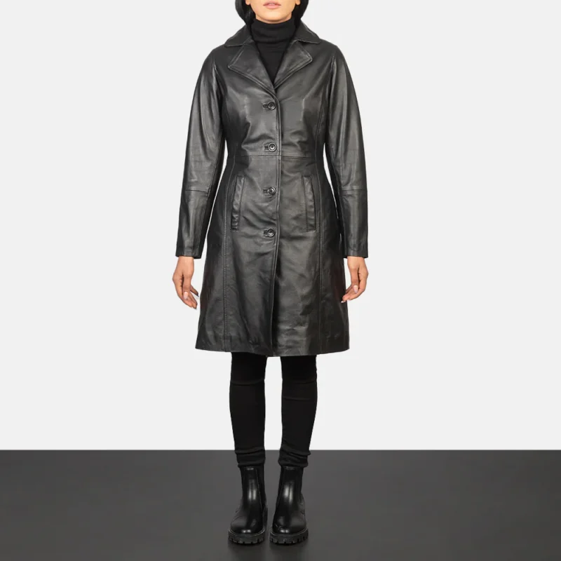 Alexis Black Single Breasted Leather Coat