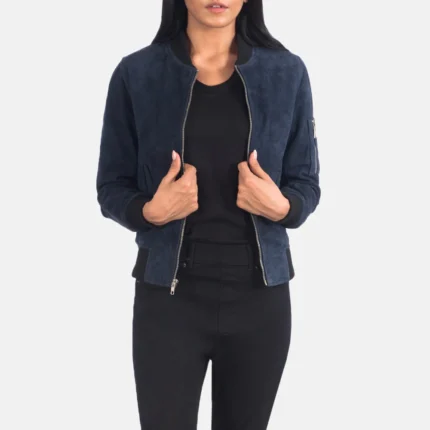 Ava Ma-1 Blue Suede Bomber JackeT