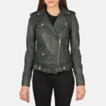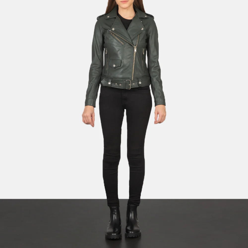 Home Women's Jackets Women's Leather Jackets Alison Green Leather Biker Jacket