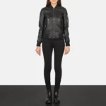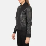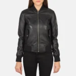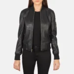 Ava Ma-Top Black Leather Bomber Jacket