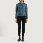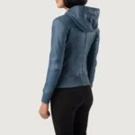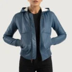 Luna Blue Hooded Leather Bomber Jacket