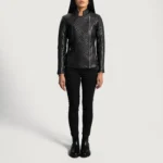 Orient Grain Quilted Black Leather Biker Jacket