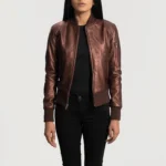 Reida Maroon Leather Bomber Jacket