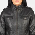 Roslyn Black top Hooded Leather Bomber Jacket