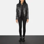 Kelsee Distressed Black Leather Biker Jacket