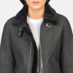 Be the first to review “Sherilyn B-top Distressed Black Leather Bomber Jacket” Cancel reply