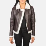 Sherilyn B-top Maroon Leather Bomber Jacket