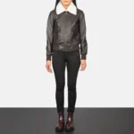 Sherilyn B-top Distressed Black Leather Bomber Jacket